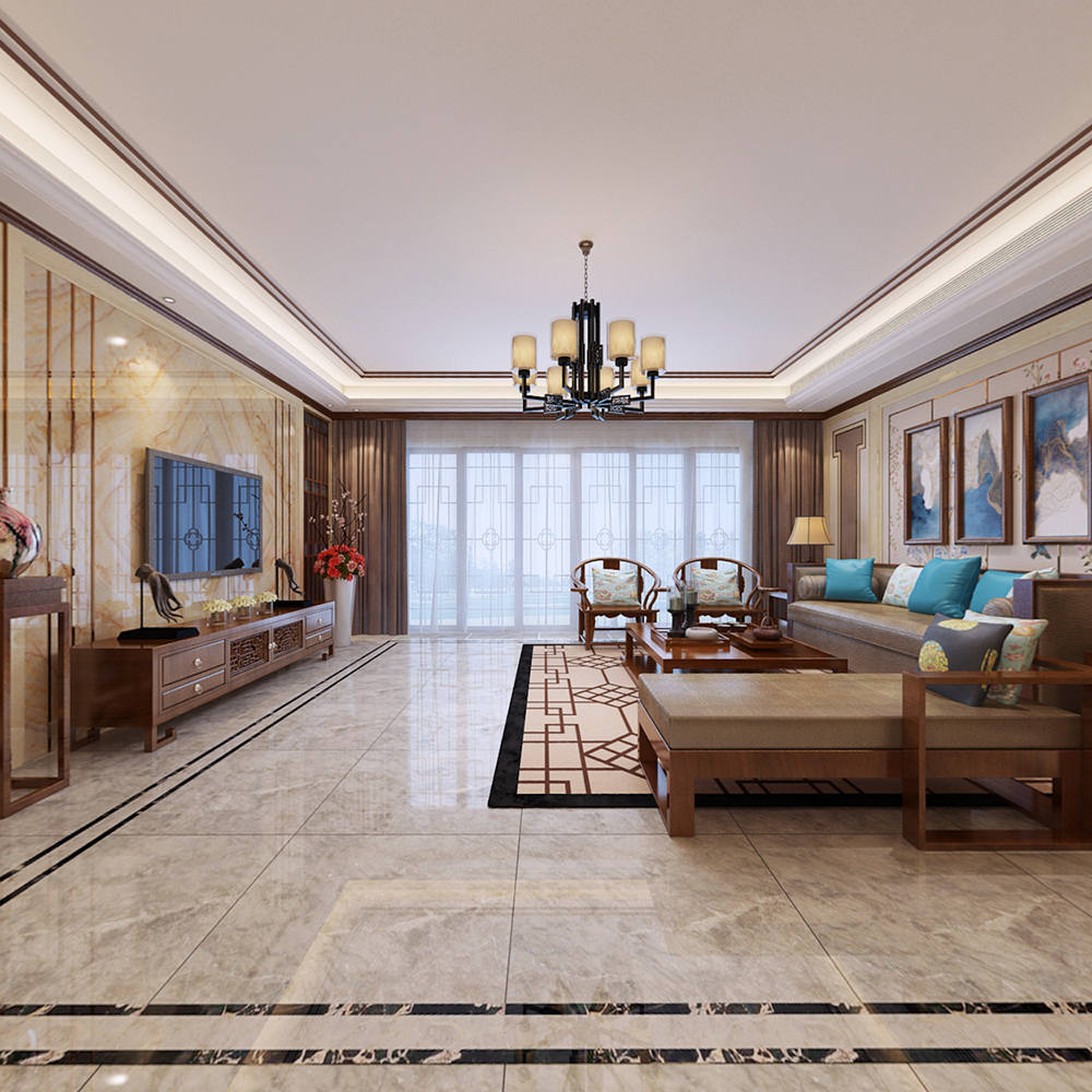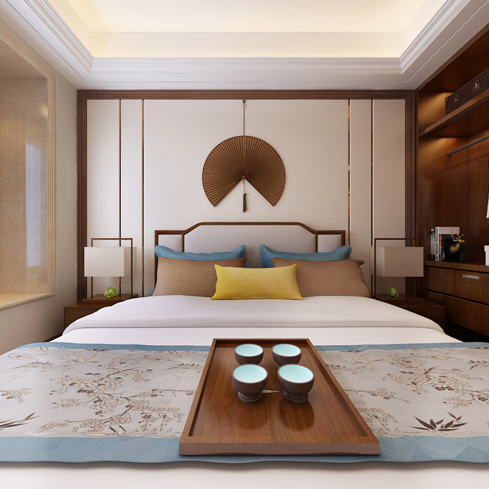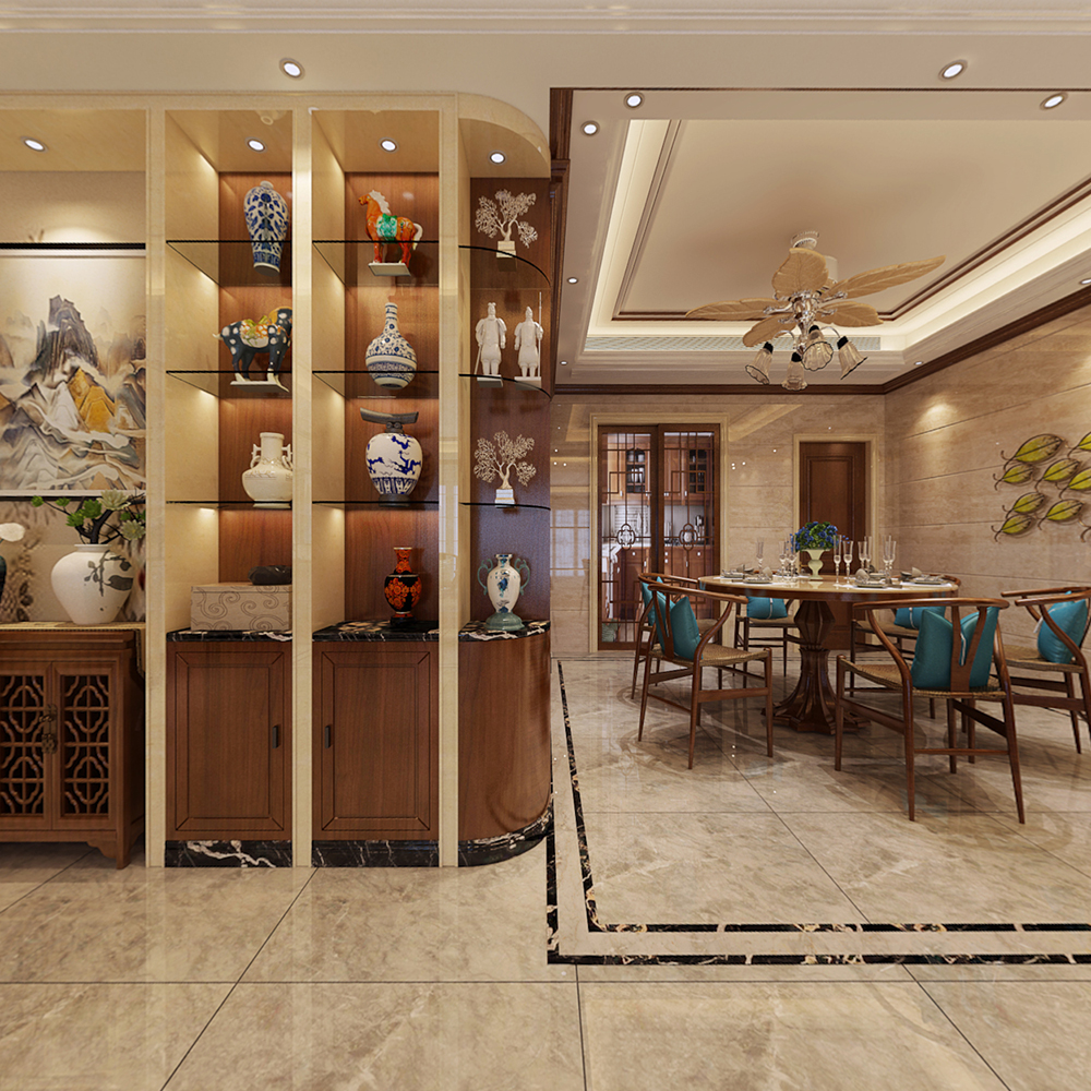梅州萬象江山四居新中式風(fēng)格裝修效果圖