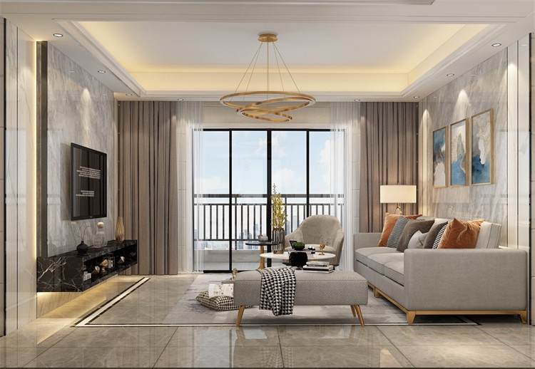 本案例是現(xiàn)代風(fēng)格,原因是客戶家里常住4口人,有夫妻2人,1個(gè)男孩子及1個(gè)女孩子,男業(yè)主是做物流管理的,經(jīng)常出差,裝修風(fēng)格喜歡現(xiàn)代感很強(qiáng)的,還有考慮到小朋友興趣愛(ài)好多,喜歡涂涂畫(huà)畫(huà),建議了業(yè)主墻身貼墻磚,本來(lái)業(yè)主打算在墻身貼墻布和護(hù)墻板,經(jīng)過(guò)一番溝通,最后選擇了墻磚。效果搭配,地面磚采用了高級(jí)流行灰結(jié)合波打線,空間區(qū)域感及功能性更明顯劃分出來(lái),電視背景利用了巖板大板磚,背景主體顏色采用奧特曼灰色與魚(yú)肚白間隔,大大增加了空間對(duì)比性,用懸空的大理石臺(tái)代替了傳統(tǒng)的電視柜,簡(jiǎn)潔大方且方便搞衛(wèi)生,再結(jié)合黑色不銹鋼裝飾條點(diǎn)綴收口處理,視覺(jué)感非常強(qiáng)。整個(gè)裝修過(guò)程中,業(yè)主只去了5次現(xiàn)場(chǎng),大部分時(shí)間都是在微信和電話溝通,最后現(xiàn)場(chǎng)按效果圖1:1還原出來(lái),實(shí)景圖比效果圖更有質(zhì)感,業(yè)主非常喜歡,還推薦了朋友給我們裝修。