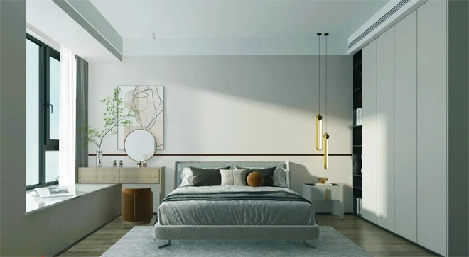 整體空間以現代簡潔為主,在輕奢風元素的搭配下,營造出一個端莊大方的空間感,在現代舒適的空間里帶來一個安靜優雅的舒適感。