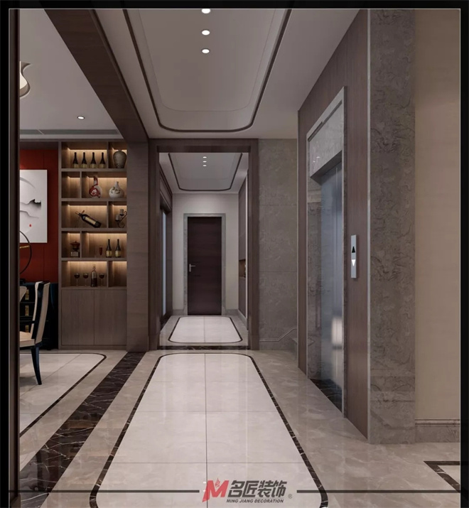 知業主偏愛中式風格,又不希望家中過于繁雜,于是本案最終定位為新中式風格,從裝飾中加入古典文化的精髓,糅合多重中國古代居所的裝飾元素。