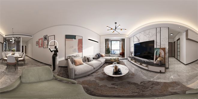 中山大信時尚家園三居現代簡約風格裝修效果圖