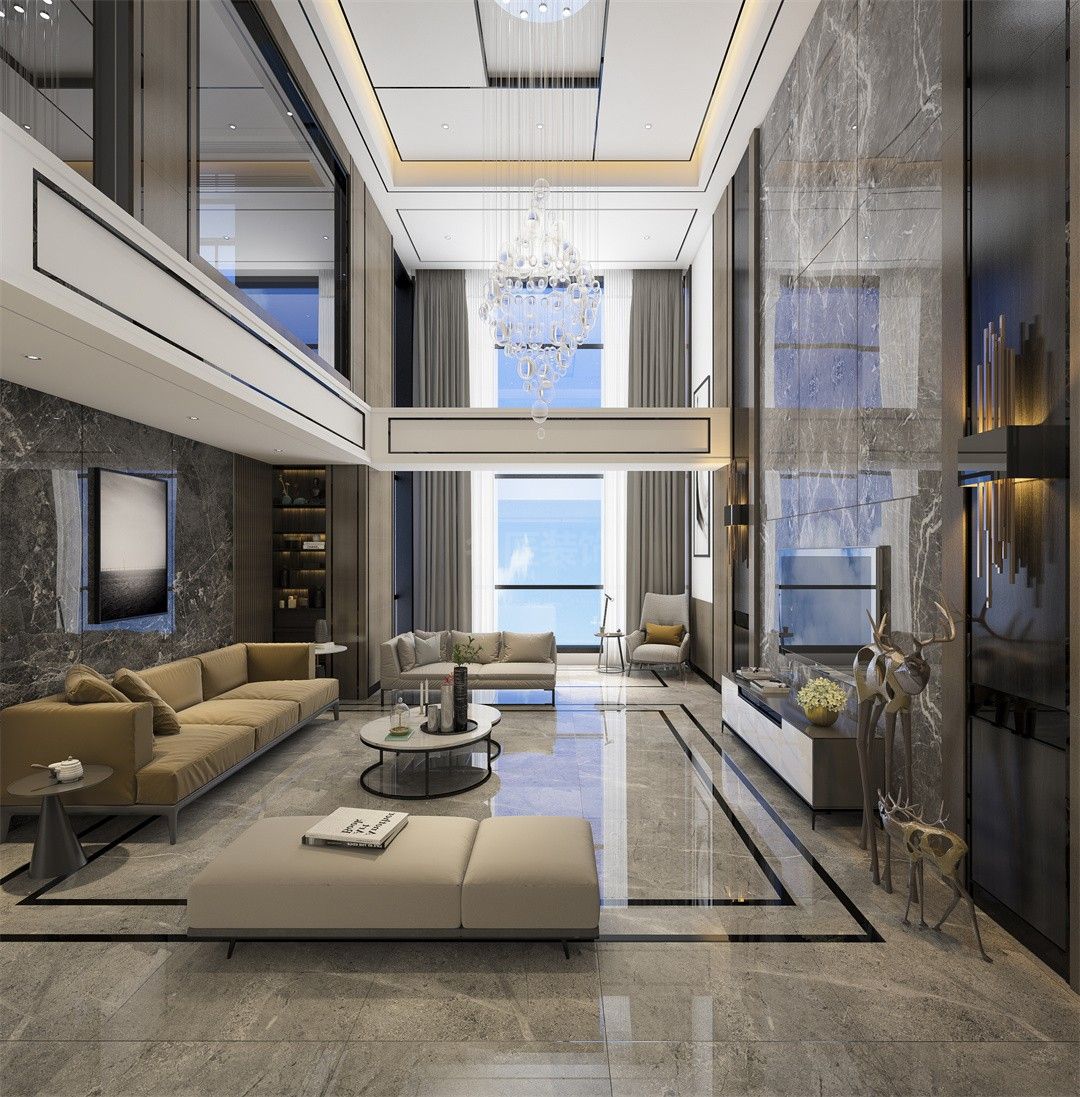 廣州101-200平米輕奢風格峰景大夏家裝設計效果圖