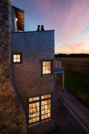 在獨特的環境中,這個家覆蓋著當地典型的雪松木瓦,建筑也被分成了多個小的體塊以融入景觀之中。