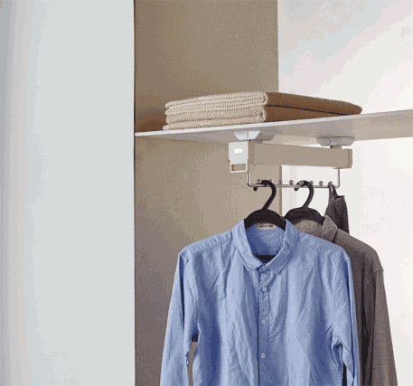 或用抽拉式衣桿,衣柜深只需350mm,U型衣帽間面積便可以壓縮為3㎡。